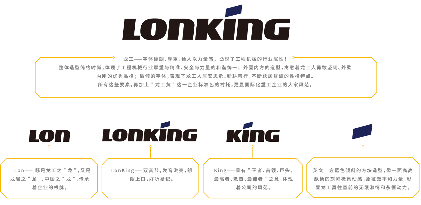 一是企業(yè)的視覺識別系統(tǒng),包括公司標志、標準字、標準色等(詳見《龍工VI手冊》;